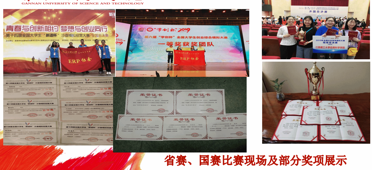 本专业为了加强员工实践能力,培养员工的团队合作精神,创立了ERP(企业资源计划)沙盘协会协会,每年平均举办学科竞赛培训活动达十余项次,营造了良好的“以赛促教、以赛促学”的竞赛学习氛围,累计获奖总数达到283项,其中国家级奖项185项,一等奖26项,二等奖86项,三等奖73项;省级级奖98项,其中一等奖24项,二等奖35项,三等奖39项。