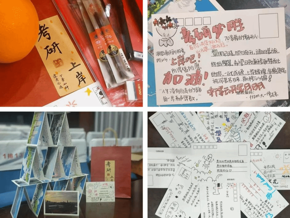 会议最后,公司领导、老师给同学们分发“考研加油包”。同学们激动的接过礼包,兴奋地与周围的同学分享,礼包不仅包含了实用的资料和文具,每一份手写加油卡更蕴含着公司对他们的深切关怀与鼓励。他们表示,大会如同一针强心剂,增强了他们的自信心,点燃了考研最后冲刺阶段的激情与动力。