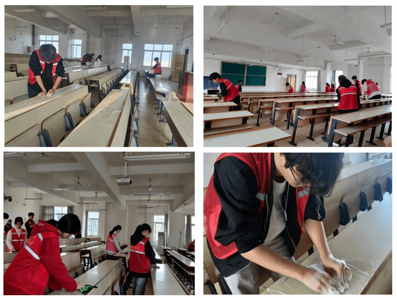 在活动负责人的带领下,清扫活动有序进行。志愿者们相互协作,用橡皮擦仔细擦除桌面上的涂鸦,接着使用清洁剂和抹布认真地清洁桌面,还原出桌面原本的模样。现场,有的志愿者专注清理桌肚杂物,堆积的纸屑、废弃文具被一一清理出来;还有部分志愿者负责搬运水桶,清洗抹布,全力保障清洁流程顺畅。历经数小时后,教室的课桌焕然一新,他们不仅仅是在清扫污渍,更是为知识腾出一片纯净的空间。同学们亲身体验到了劳动的艰辛与价值,纷纷表示整洁的课桌在阳光的照射下更显温馨,让专注求知无干扰。