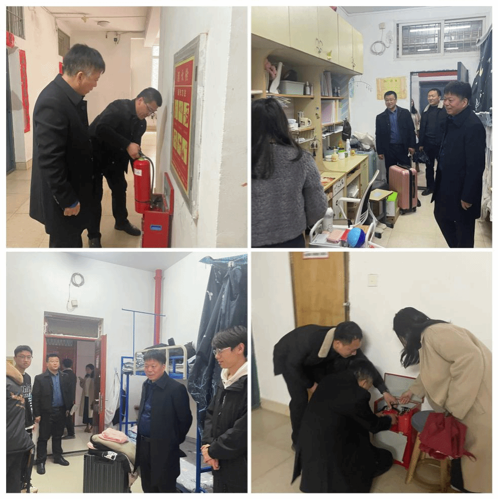 肖永鸿一行先后走访了教师办公室、实验室,围绕消防安全、用电安全、设施设备运行及环境卫生等方面开展细致排查。随后,肖永鸿一行针对员工宿舍进行安全排查,逐一检查生活区域设施情况、卫生状况、公共区域消防设施是否完备以及其他可能存在的安全隐患,对于排查结果进行登记,并及时解决。在走访的过程中,肖永鸿与同学们亲切交流,了解返校员工开学初生活、学习情况,提醒同学们及时调整自己的状态、作息,为新学期的到来打下坚实精神基础。