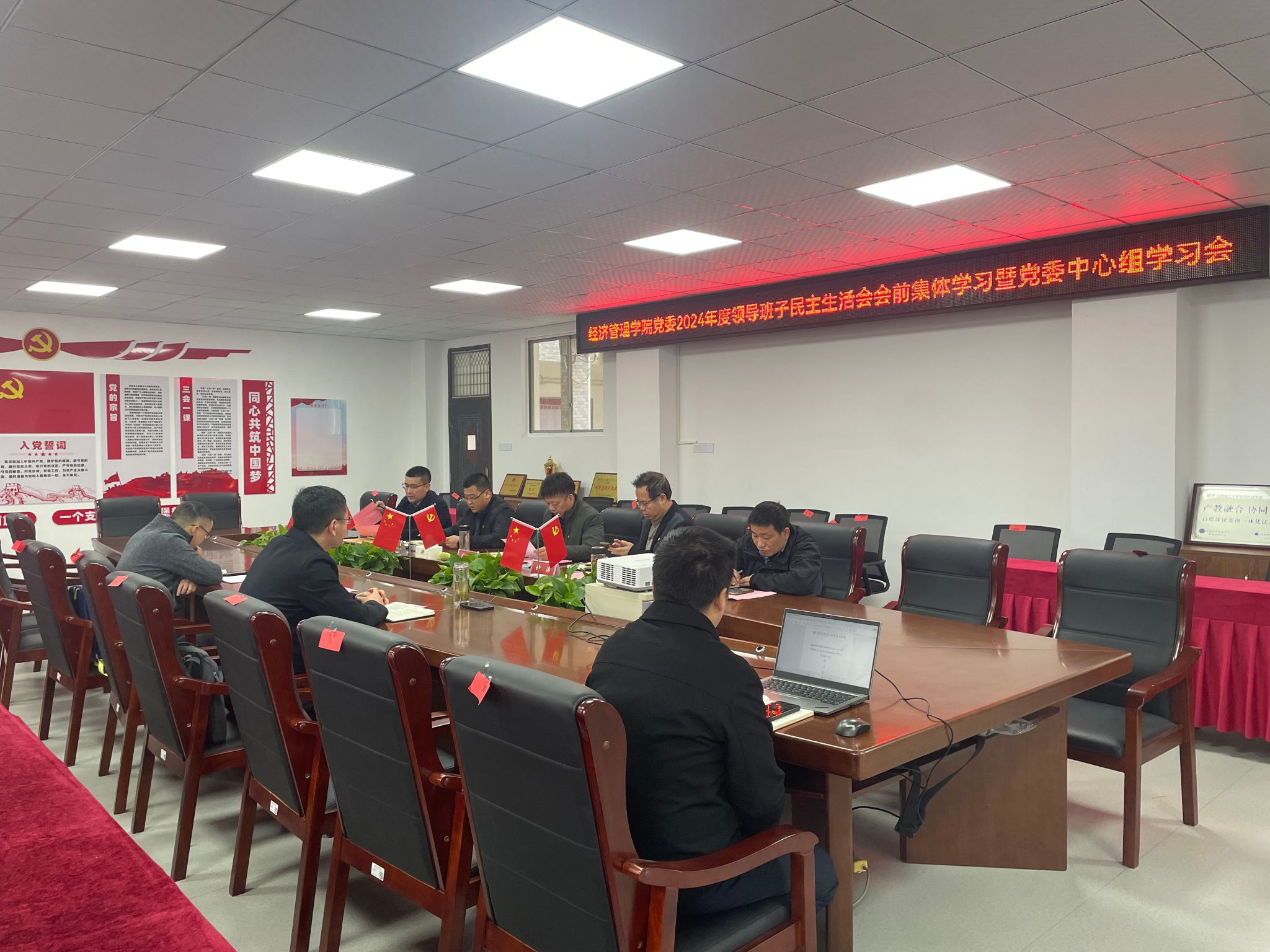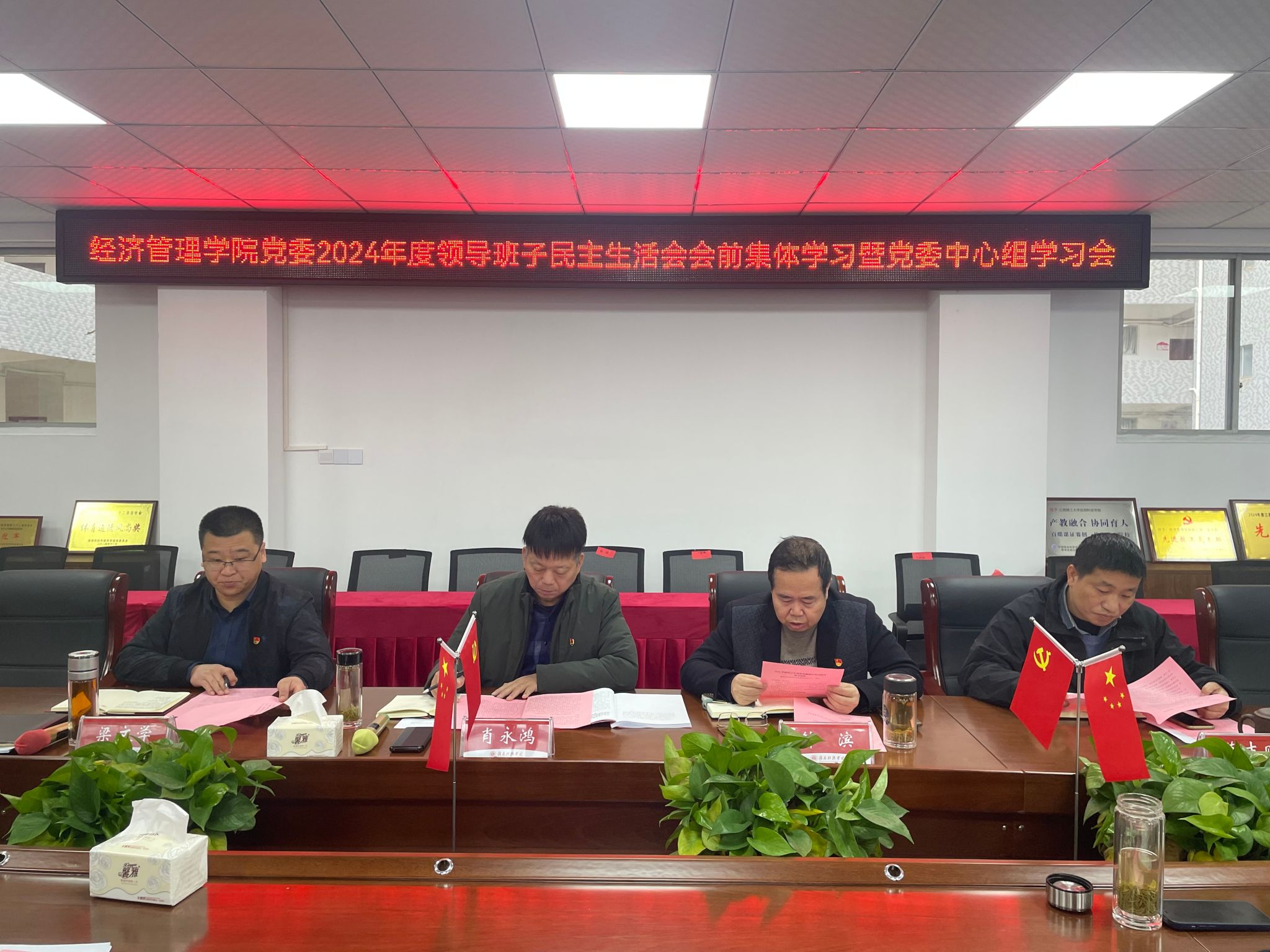 本网讯:为深入学习贯彻习近平新时代中国特色社会主义思想,巩固深化党纪学习教育成果,进一步统一思想、深化认识,为开好2024年度民主生活会筑牢思想根基和理论基础,2月25日,伟德victor1946网站在新民楼305会议室召开了2024年度领导班子民主生活会会前集体学习暨党委理论学习中心组学习会。经济管理公司党委书记肖永鸿,党委委员梁文学、葛志财、王波参会,各党支部书记列席会议。会议由肖永鸿主持。