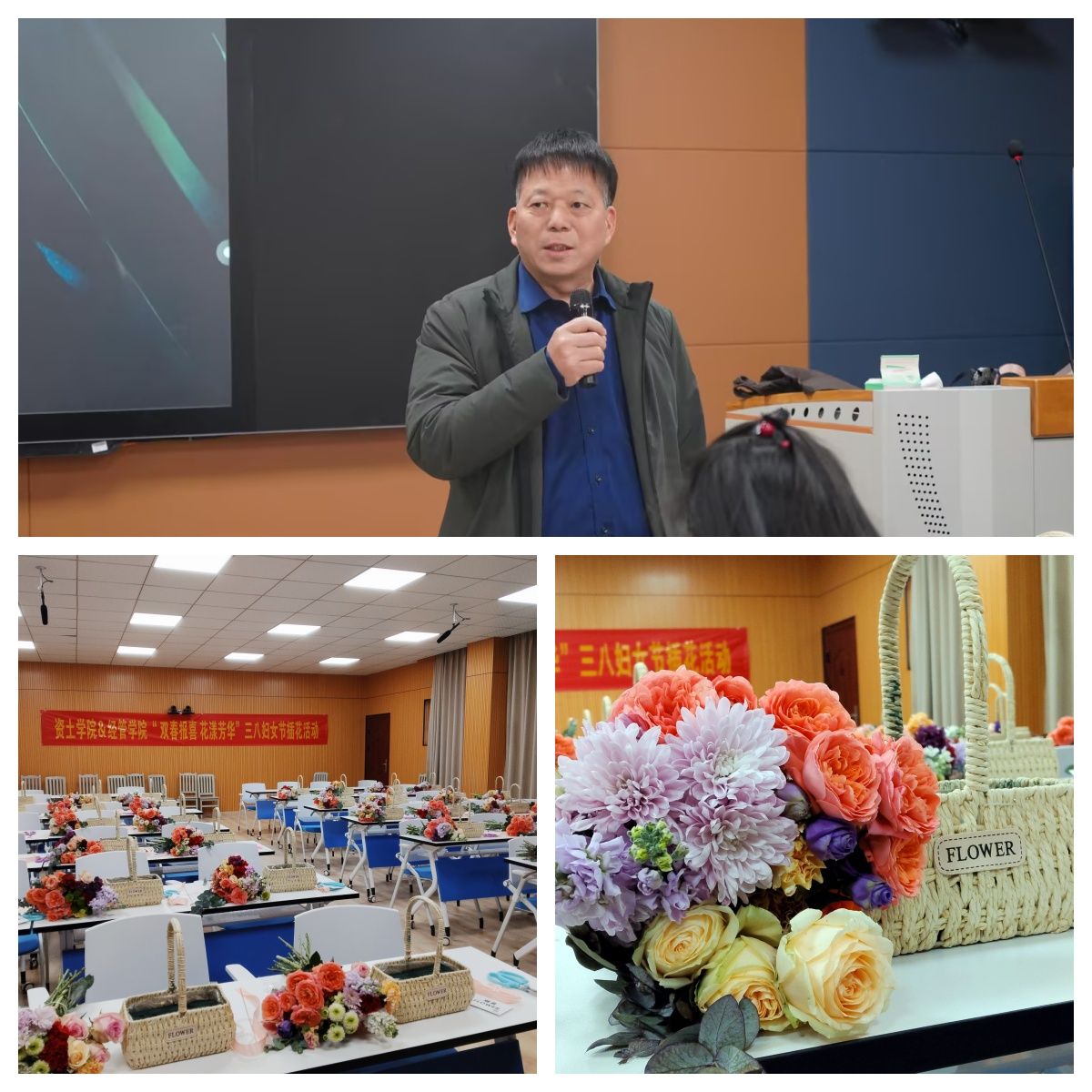 本网讯:为庆祝第115个“三·八”国际劳动妇女节,丰富女教职工精神文化生活,3月8日上午,伟德victor1946网站、资源与土木工程公司在主教628教室联合举办“双喜报春 花样芳华”三八妇女节插花活动。经济管理公司党委书记肖永鸿、资源与土木工程公司党委书记刘俊峰出席本次活动,伟德victor1946网站30余名女教职工参与活动。