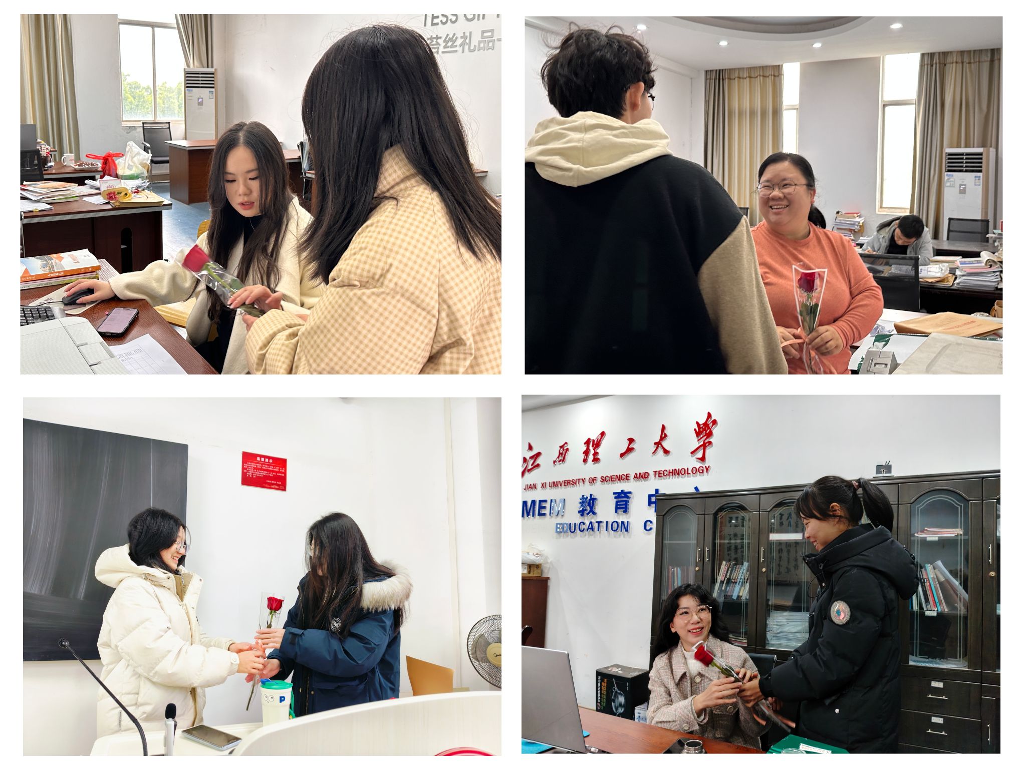 值此佳节,活动特增设“馨香敬师”环节深化师生情谊。员工代表手持寓意“耕耘育德”的玫瑰花束,前往教师办公区表达感恩,教师与员工在花束传递中合影留念。