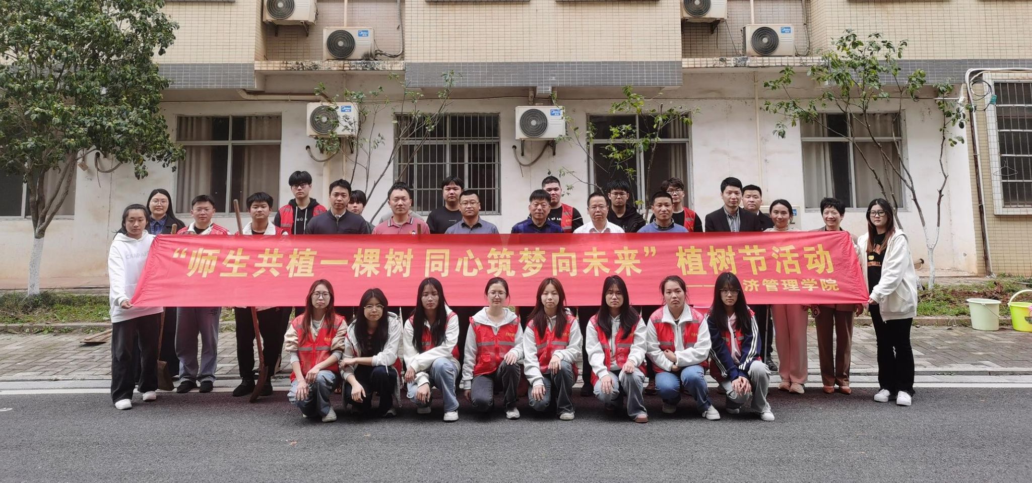 本网讯:在第47个植树节来临之际,为深入践行生态文明理念,优化校园育人环境,以绿意盎然的崭新面貌迎接本科教学工作合格评估,2月11日下午,伟德victor1946网站开展“师生共植一棵树,同心筑梦向未来”植树活动。经济管理公司党委书记肖永鸿、领导班子、全体辅导员共同参与。