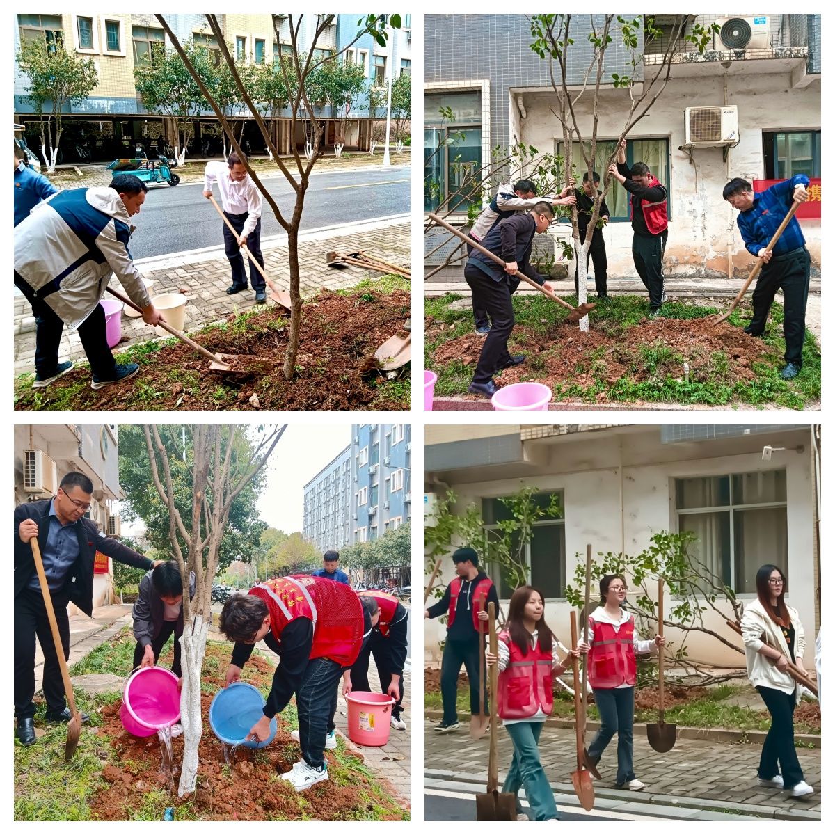 活动现场,师生们热情高涨,迅速投入热火朝天的植树劳动中。大家分工明确,配合默契,挥锹铲土、扶苗填坑、培土浇水,每一个环节都一丝不苟,每一个步骤都井然有序。老师们以身作则,率先垂范,悉心指导员工们正确植树;同学们干劲十足,挥洒汗水,用实际行动诠释着对校园的热爱。现场气氛热烈,欢声笑语不断,他们以实际行动为合格评估增添绿色活力。经过数小时努力,桂花树苗整齐排列,在春风中摇曳生姿,共绘绿色画卷的盎然春意。