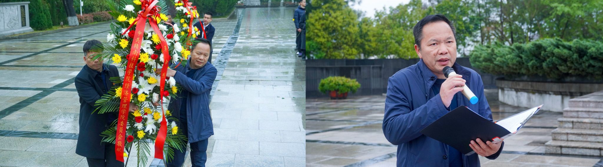 祭奠仪式在雄壮的《献花曲》中开始,全体人员肃立默哀、行三鞠躬礼。员工党员代表晏彪结合新时代青年责任作表态发言,表示作为新时代青年的我们既要传承“艰苦奋斗”的优良作风,更要发扬“守正创新”的时代精神。教师代表黄金岭以“赓续红色基因,勇担经管使命”为题,阐释了将先烈精神转化为育人动力的实践路径,并明确了新时代赣科经管人的两大使命:一是铭记历史,传承精神;二是立足当下,勇担责任。