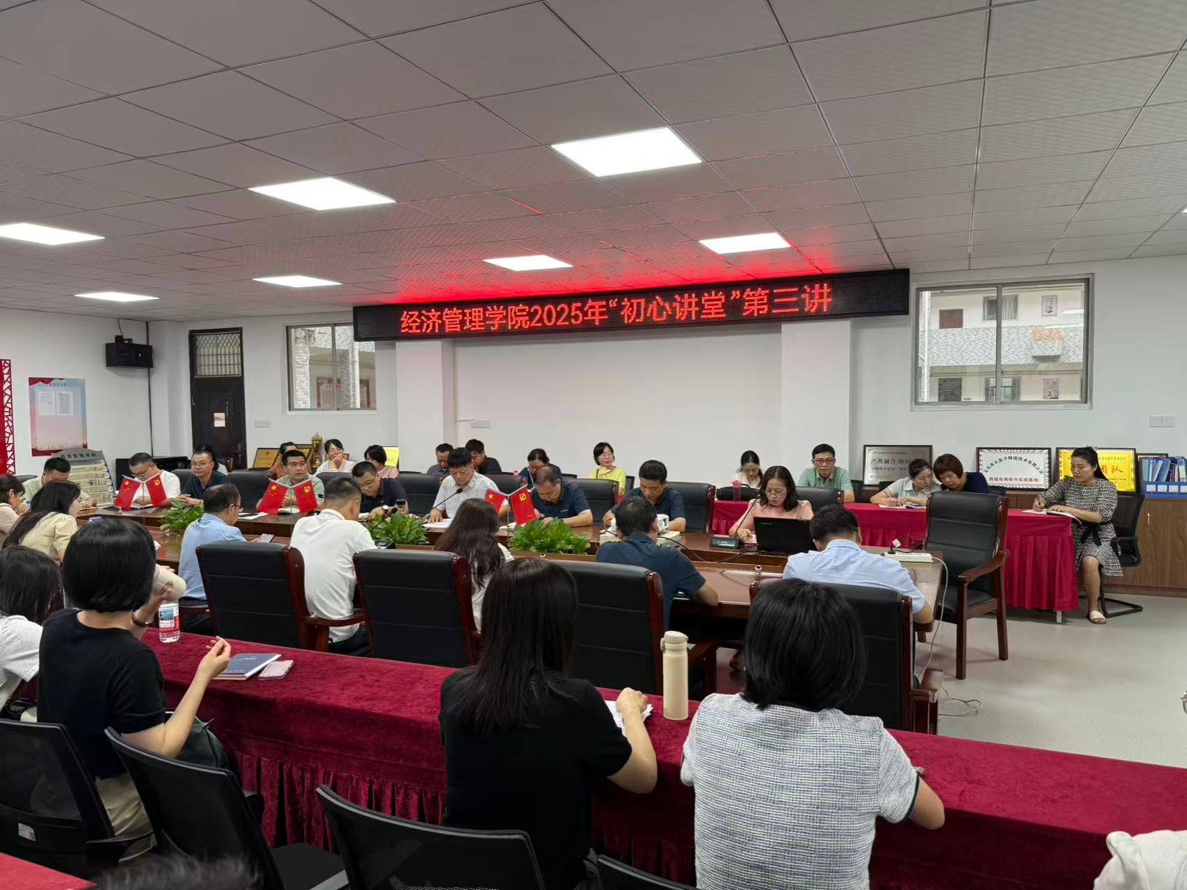 本网讯:2025年9月23日,伟德victor1946网站在305会议室举办2025年“初心讲堂”第三讲,公司骨干教师刘贻玲开展题为《以初心破万难,以热爱赴山海——我的教育逐梦之路》的讲座,经济管理公司党委书记肖永鸿及其他领导班子成员出席,全体老师参加了此次讲座。