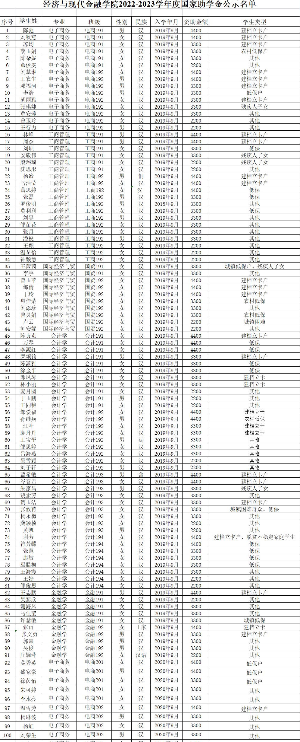 根据《伟德victor1946网站本科生国家助学金评审实施办法》及学工《关于开展公司 2022 年国家助学金评定工作的通知》(〔2022〕27号)等有关文件精神,经员工个人申请、班级评议小组评议、系评审领导小组综合考察,集体确定2022-2023学年度公司国家助学金初评人选,现将名单予以公示。