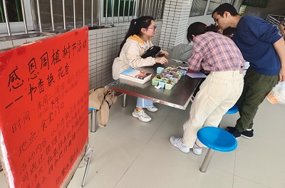 本网讯:为提高我系员工的感恩意识、环保意识和公益意识,3月16日至3月20日,经济管理系团总支、员工会组织开展了感恩周植树节——以“书香”换“花香”主题活动。