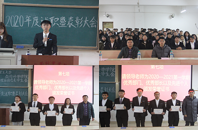 本网讯:12月15日下午,经济管理系团总支员工会在主教Z1D3召开2020年度述职暨表彰大会。经济管理系副主任梁文学、团总支书记王博文以及全体员工会成员参加此次大会。