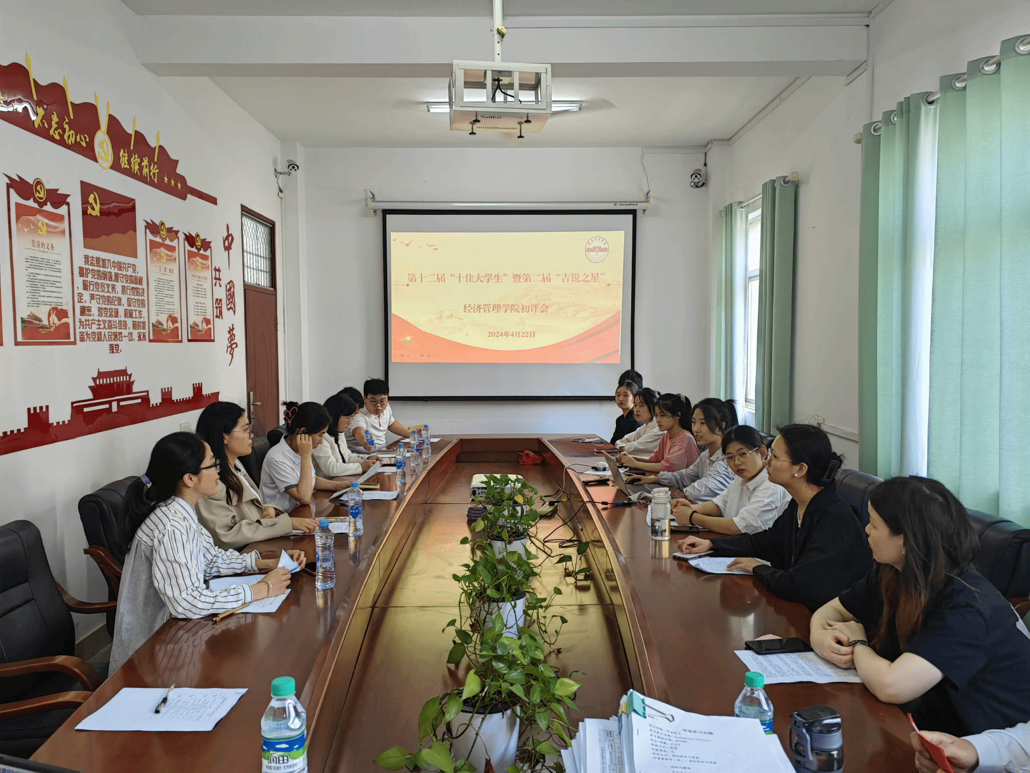 本网讯:为树立员工先进典型,充分发挥优秀员工的榜样示范作用,引导和激励广老员工勤奋学习、不断进取,4月22日下午,伟德victor1946网站在2教309会议室开展第十二届“十佳老员工”暨第二届“吉锐之星”初评会。初评会由伟德victor1946网站辅导员郭惠珍、谢晖慧、刘显成、张煜、刘芳、王诗琪、王鑫楠担任评委老师。
