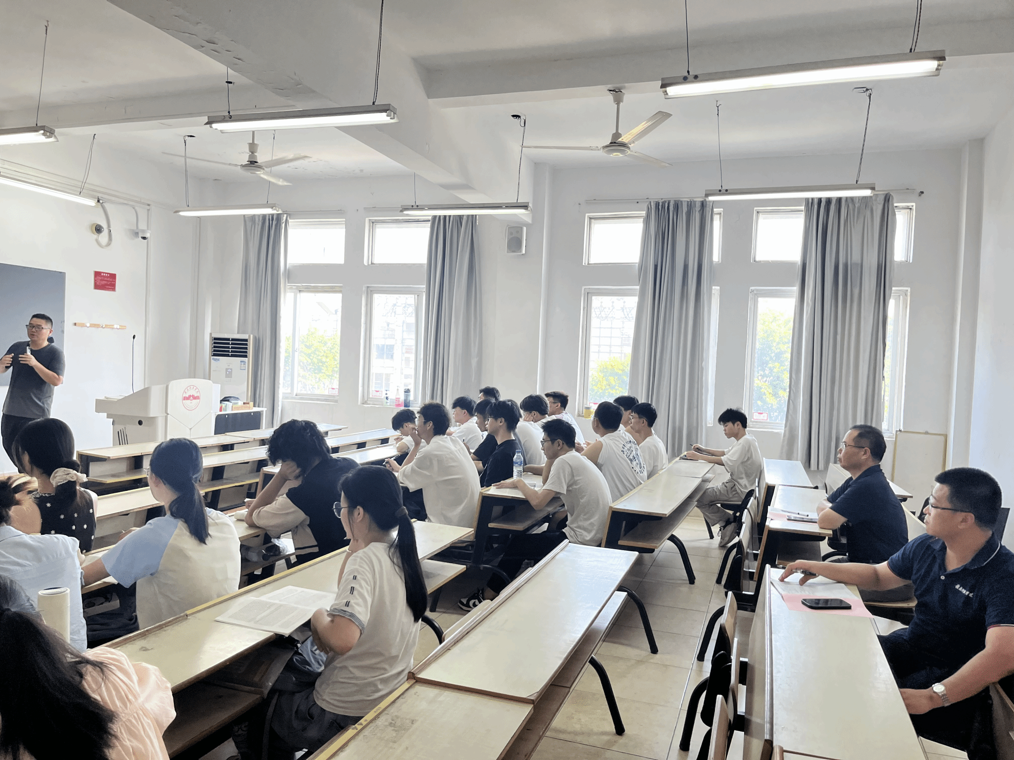 9月2日上午,陈文新、肖永鸿一行人来到主教Z113教室,旁听工商管理教研室郭信艳老师的《西方经济学》课程。课后,陈文新对课程上课情况提出改进建议。钟滨一行人来到主教Z204,旁听金融学教研室王瑞梅老师的《区域经济学》课程。