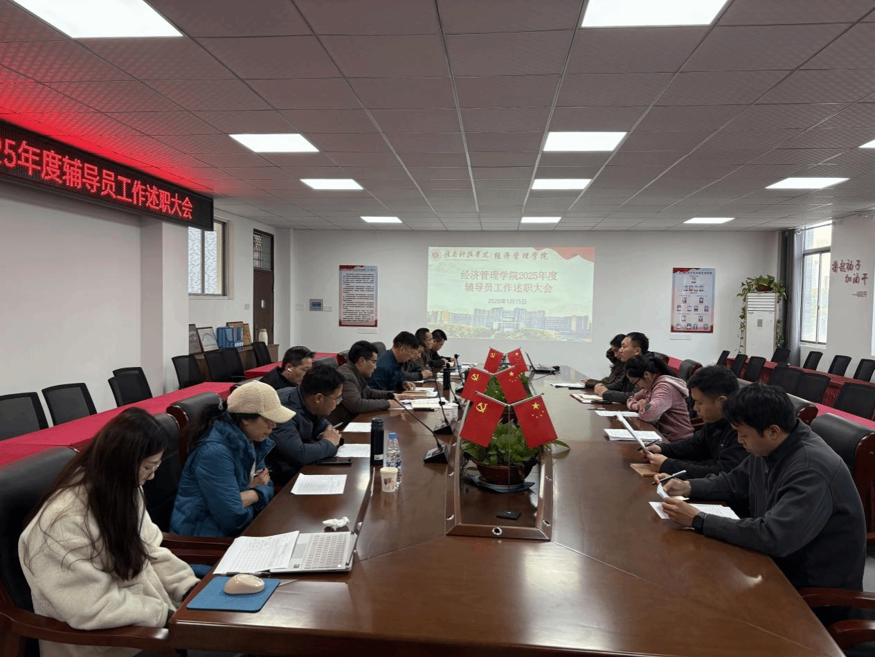 本网讯:1月15日下午,公司2025年度辅导员工作述职大会在新民楼305会议室顺利举行。公司党委书记肖永鸿、领导班子成员、各教研室教师代表共同参会,全面听取了公司全体辅导员过去一年的工作汇报,并进行了深入评议。学员党委委员梁文学主持会议。