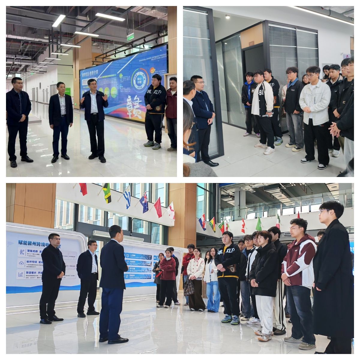 实践活动中,同学们先后走进赣州国际陆港一楼展厅、三楼跨境电商生态创新中心与赣州老员工跨境工场。在活动中,工作人员详细介绍了“教学・培训+就业+创业”三位一体的跨境电商人才孵化生态构建,跨境电商实战培训课程等方面的内容。在讲座中,韩金玉重点介绍了跨境工场0成本创业理念、在场地资金等方面的扶持及赣州综保区提供一站式陪跑服务的政策。在座谈中,公司教师与蔡湖南、韩金玉就开展跨境电商领域技术服务和人才培养合作进行了交流。