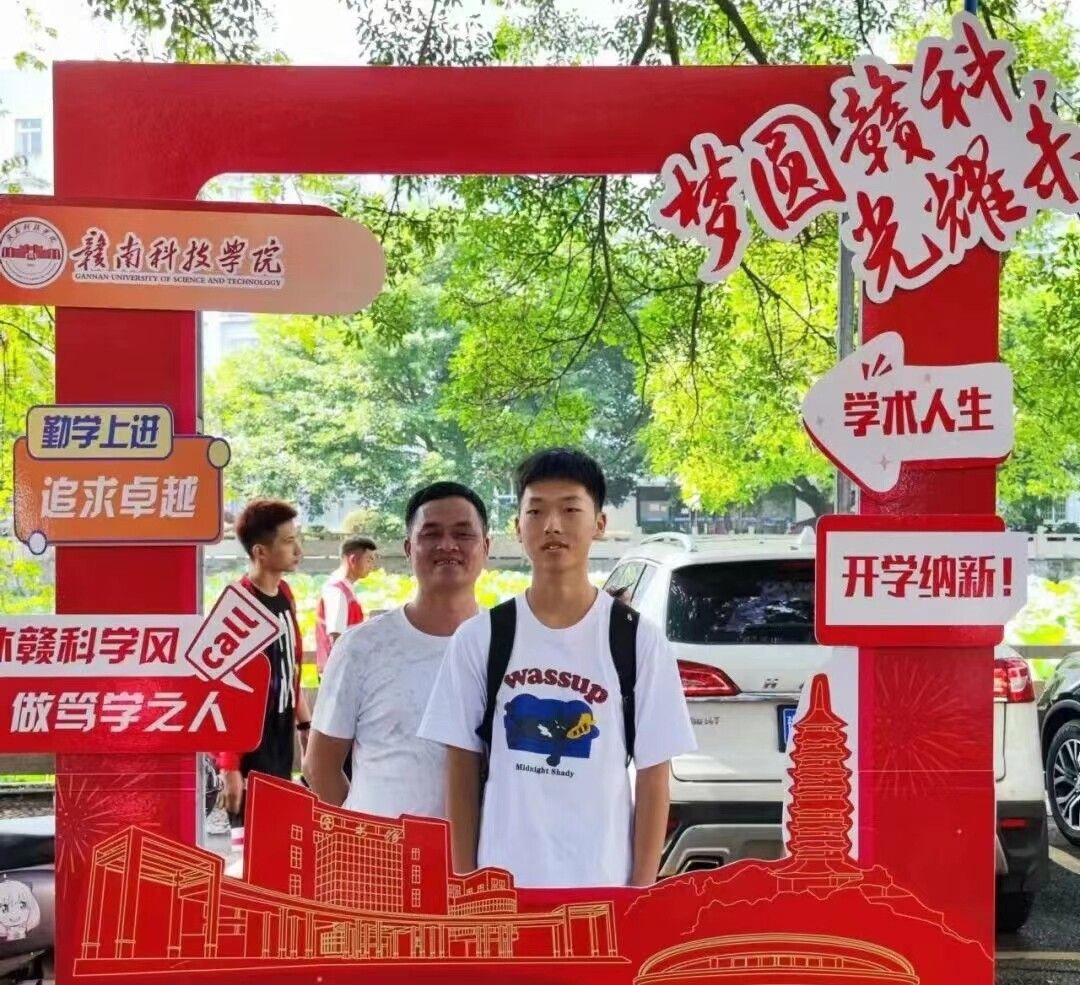 图为新生和新生家长在立牌合影留念。中国青年网通讯员 石青山 供图