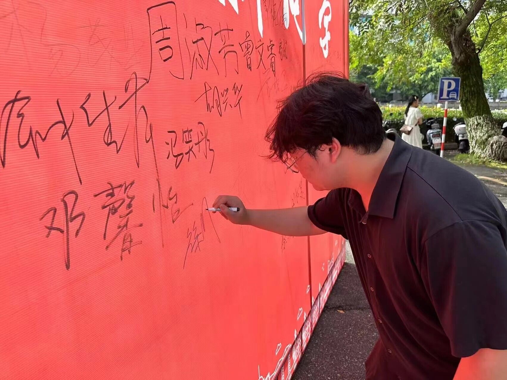 图为新生签名墙。中国青年网通讯员 石青山 供图